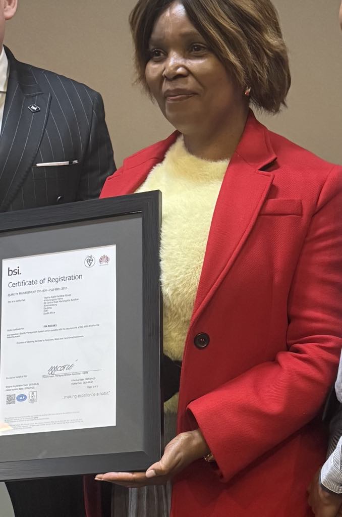Thetha Nathi Facilities Group 4 Morningside Palms 60 Centre Road Morningside Sandton Johannesburg 2057 South Africa Certificate Number: FM 801881 Scope: Provision of Cleaning Services to Corporate, Retail and Commercial Customers
